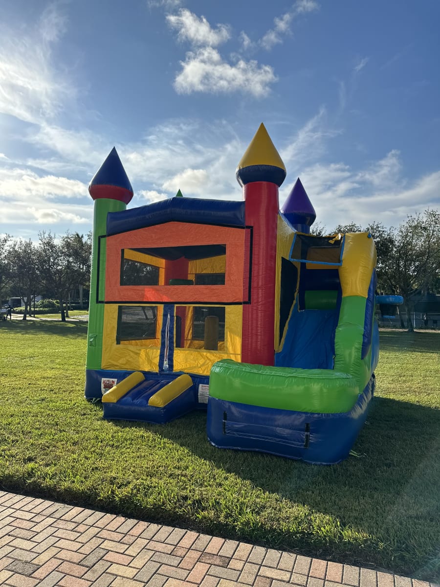 This combo unit combines the two of best worlds - a bounce house AND a slide! This unit measures 16.5’x16.5’x13’ and can be used wet or dry. Add one of our Concessions or Games for even more fun!
